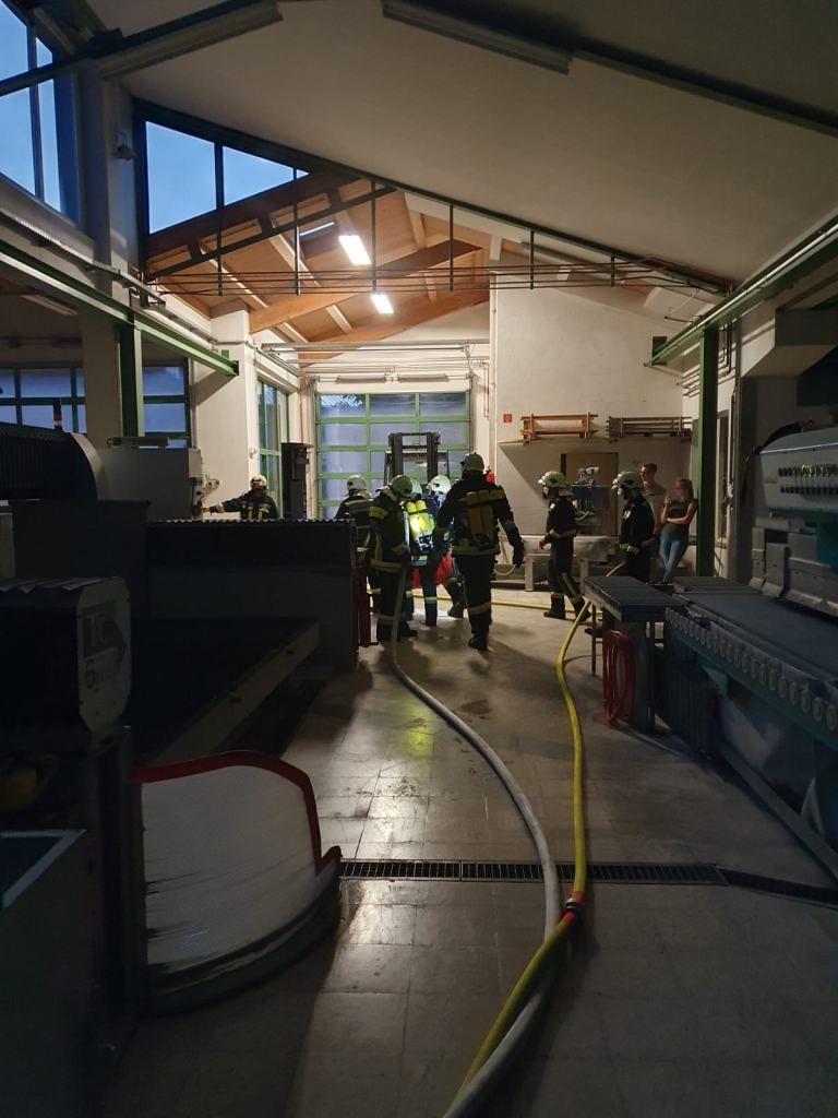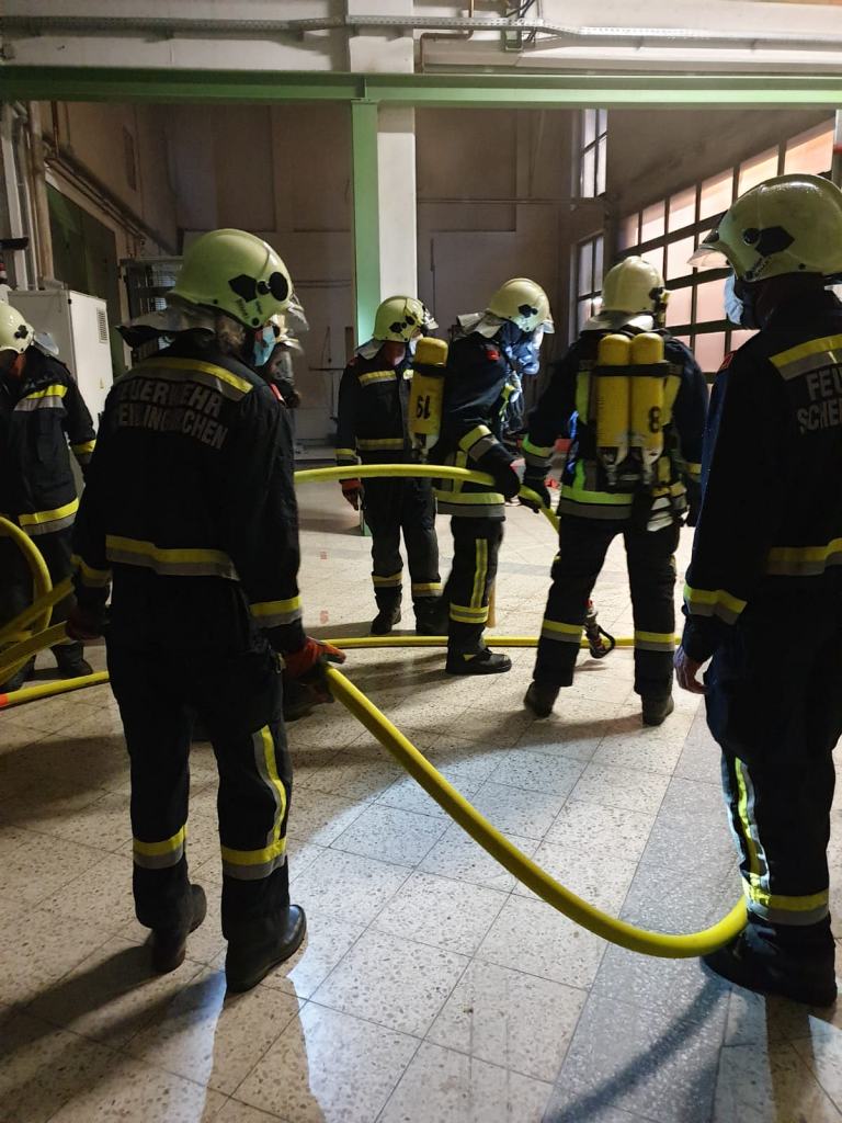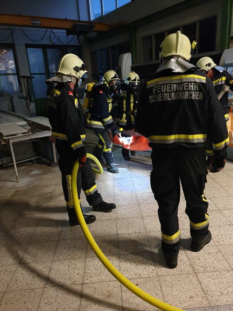 Übungsannahme war ein Brand in einem Lager eines Gewerbebetriebes in Scheiblingkirchen, wobei auch zwei Personen den Einsatzkräften als vermisst gemeldet wurden.